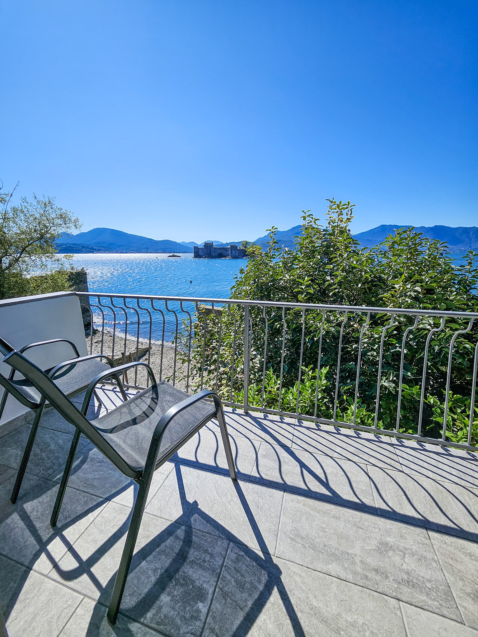 - Ca. 14 m² großer länglicher Sonnenbalkon mit zauberhafter Sicht auf den See, die Schlösser von Cannero und das gegenüberliegende Ufer