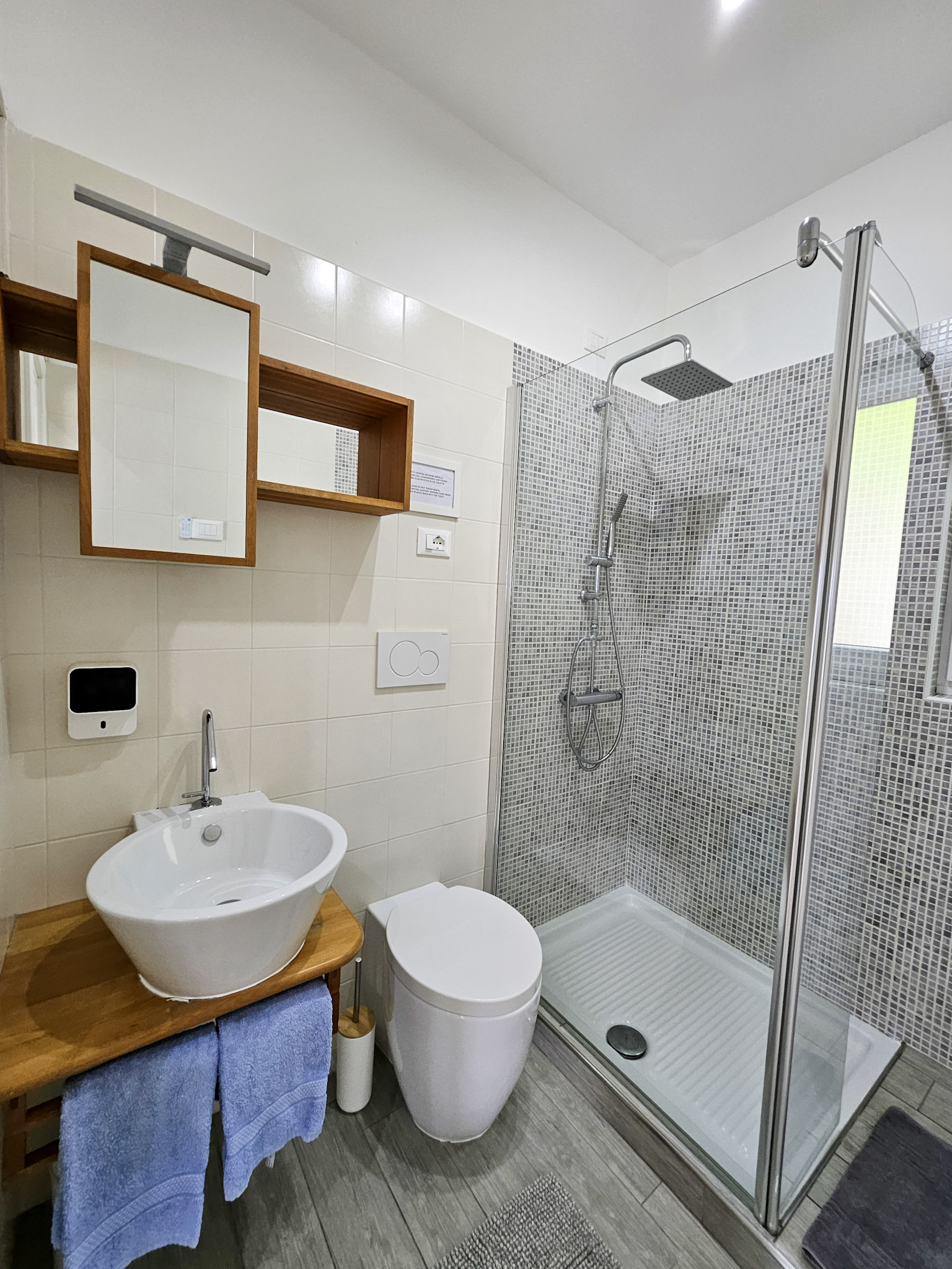 - Freundliches und modernes Bad mit Dusche, Bidet und Fenster