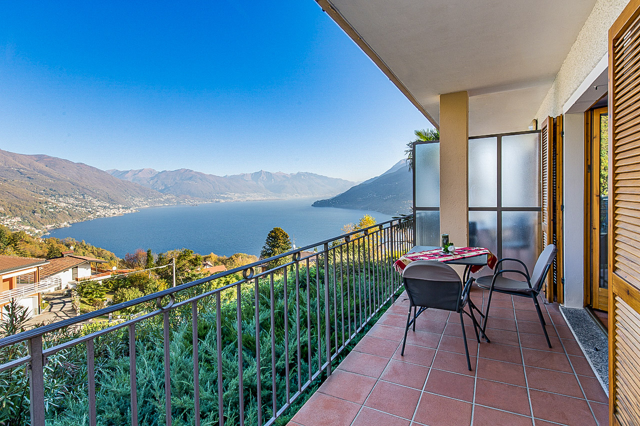 - Ca. 25 m² großer überdachter Balkon bzw. Terrasse mit herrlicher Sicht auf den See und auf die Inseln von Brissago