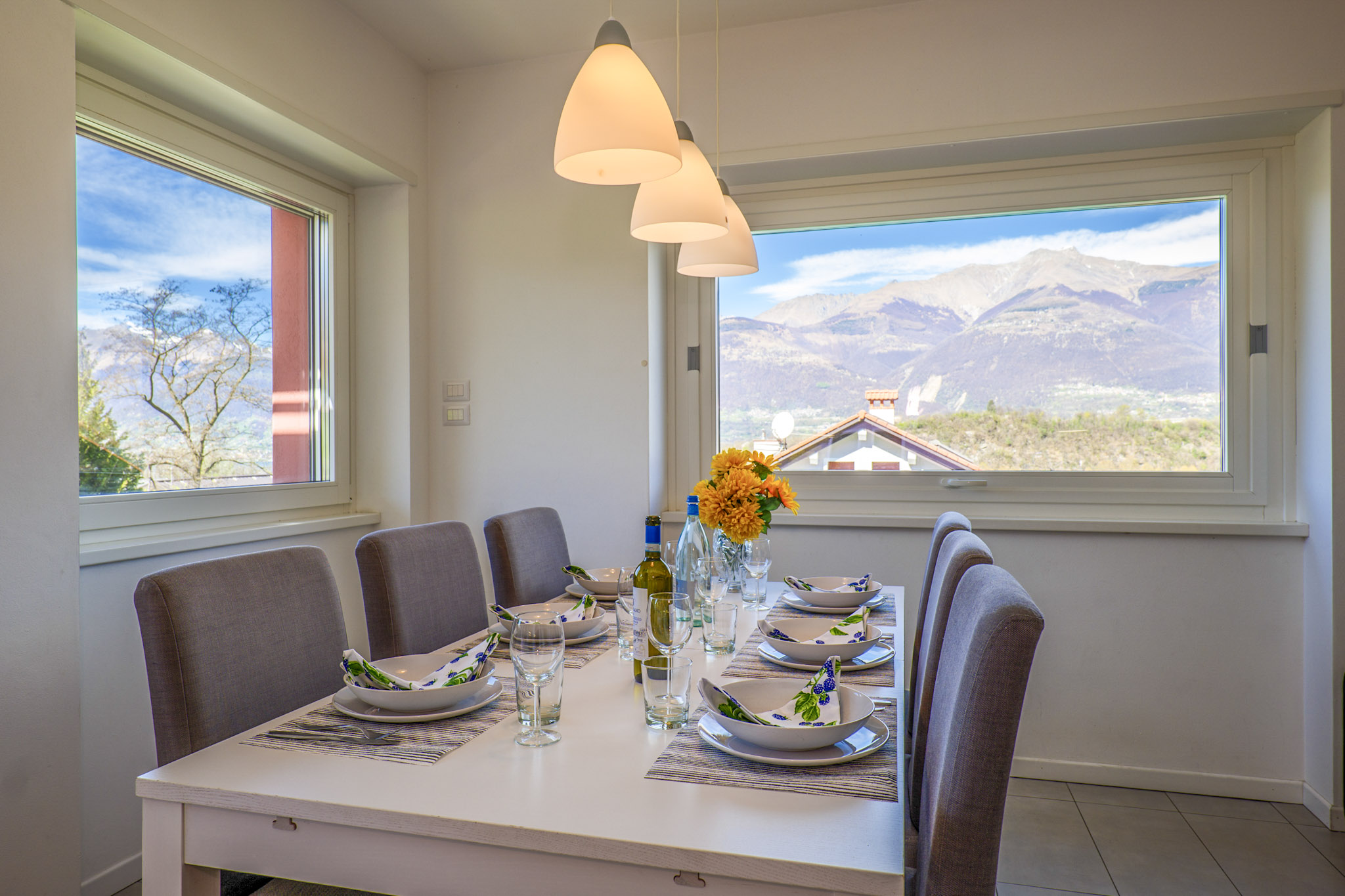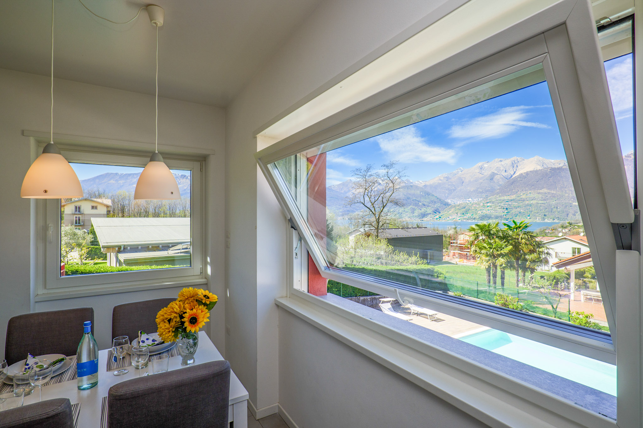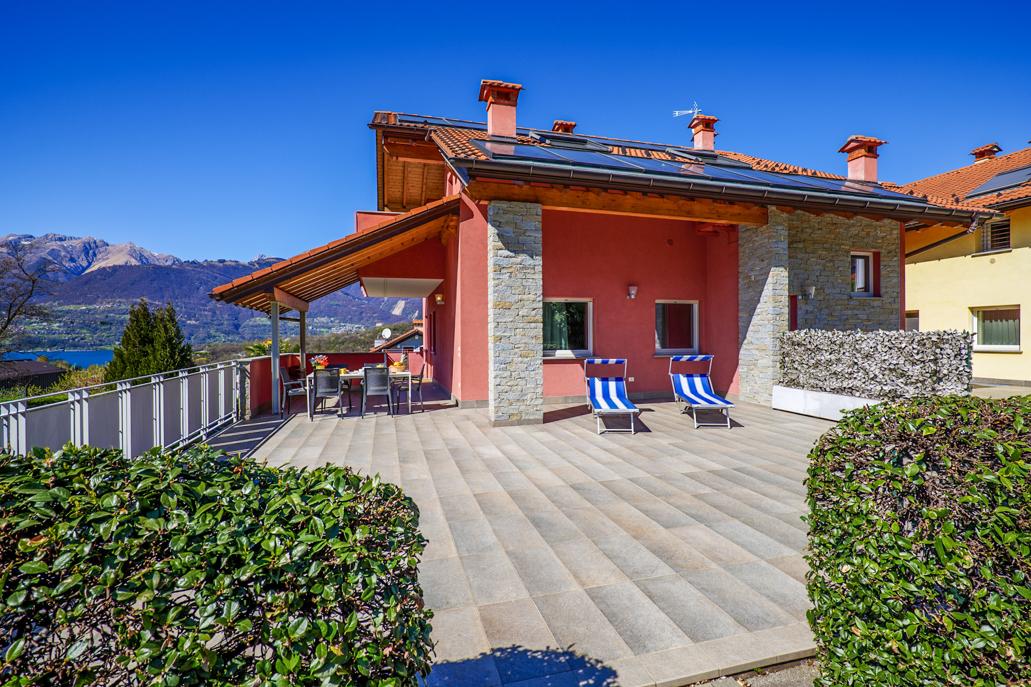 Die beiden Ferienhäuser liegen direkt nebeneinander in idyllischer Hanglage. Ihren Namen verdanken die einzelnen Wohnungen dem Hobby des Vermieters: er ist ein absoluter Rosenliebhaber. Im „Casa delle Rose Gialla“ stehen Ihnen zwei Wohneinheiten zur Anmietung zur Verfügung, im „Casa delle Rose Rossa“ sind drei. Jedes der geschmackvoll möblierten Appartements hat eine Terrasse oder einen Balkon, jeweils mit Grillmöglichkeit. Der solarbeheizte, unterwasserbeleuchtete Pool (10 m x 5 m) ist witterungsbedingt von ca. Ostern bis ca. Anfang Oktober geöffnet. Für die Kleinen stehen eine Rutsche, Schaukel und ein Sandkasten zur Verfügung. Der Pool und der Gemeinschaftsgarten werden von den Gästen beider Häuser genutzt. Eine Waschmaschine für alle befindet sich im separaten Waschraum der „Casa Gialla“. Der Yachthafen und die Ortsmitte des lebhaften Städtchens Colico sind zu Fuß in wenigen Minuten erreichbar. Ihren PKW parken Sie auf den privaten Abstellplätzen innerhalb des Grundstücks. Haustiere sind nicht erlaubt.
