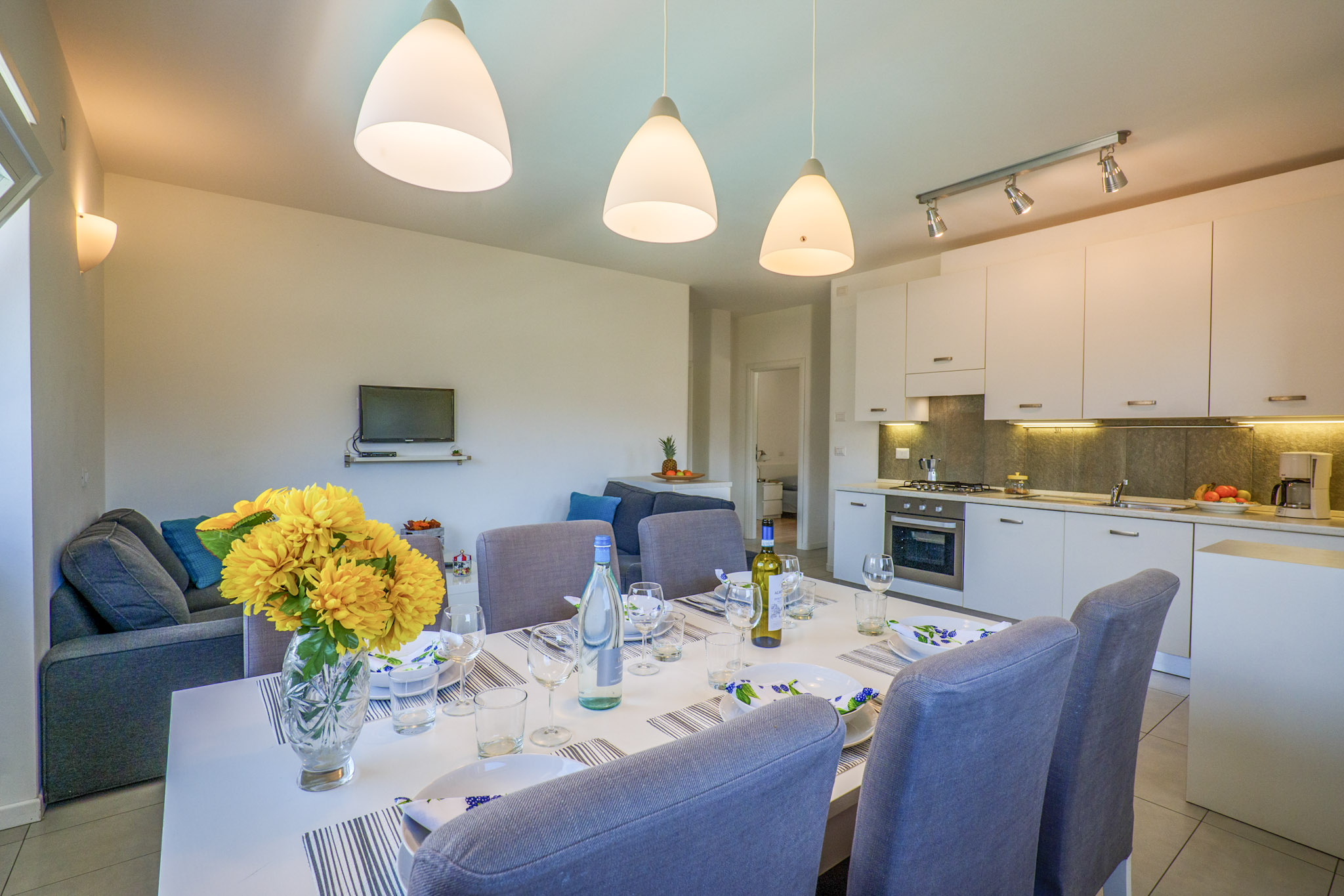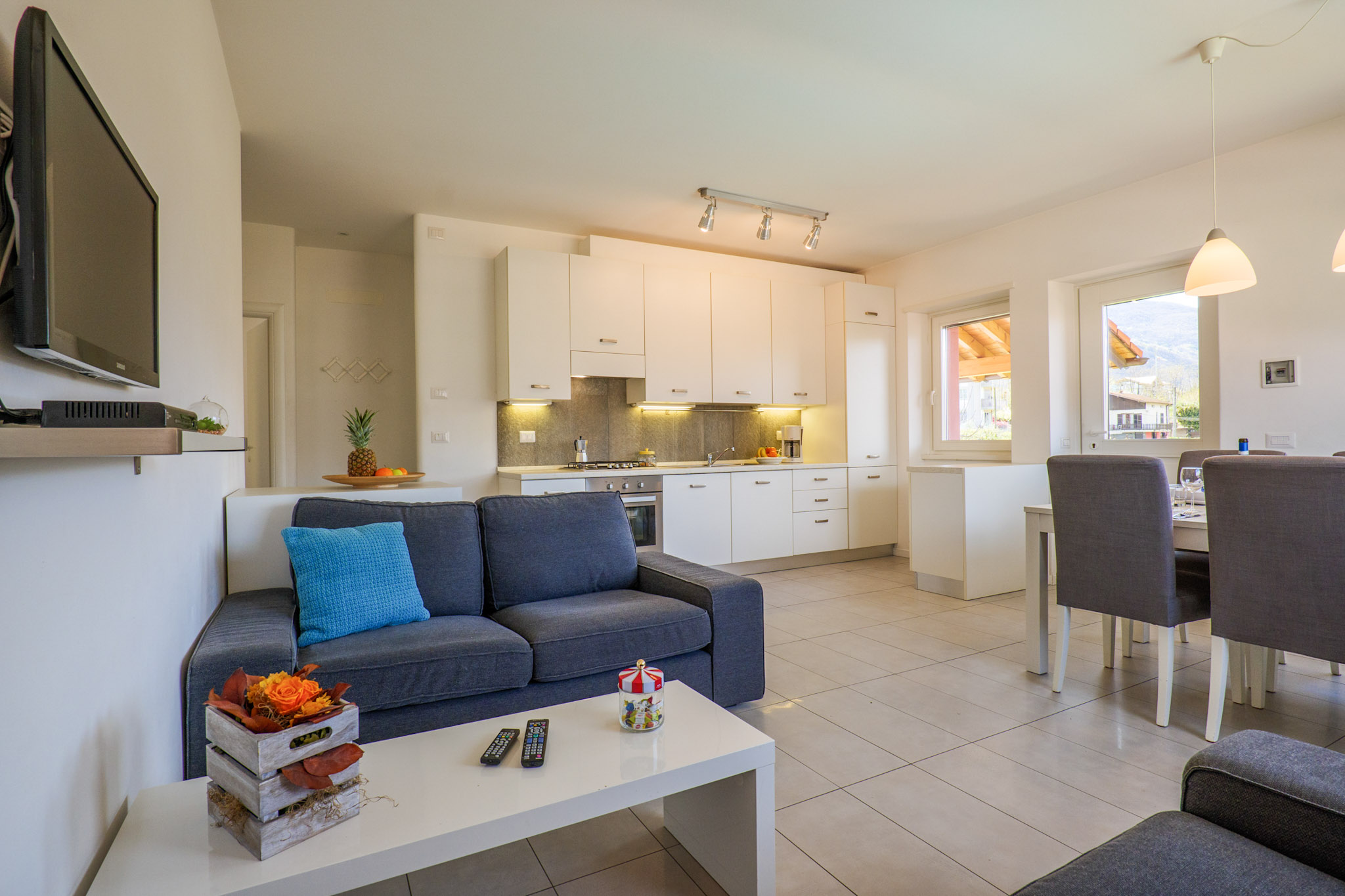 Geschmackvoll möblierte 4-Zimmer-Wohnung. Geschirrspül- und Waschmaschine. Terrasse. Grillmöglichkeit. Kostenloser WLAN-Internetzugang. Pool. Ca. 1.000 m² großes Gemeinschaftsgrundstück mit Tischtennisplatte, Rutsche, Schaukel und Sandkasten. Private Autoabstellplätze innerhalb des Grundstücks. Haustiere sind nicht erlaubt. Bis 6 Personen.