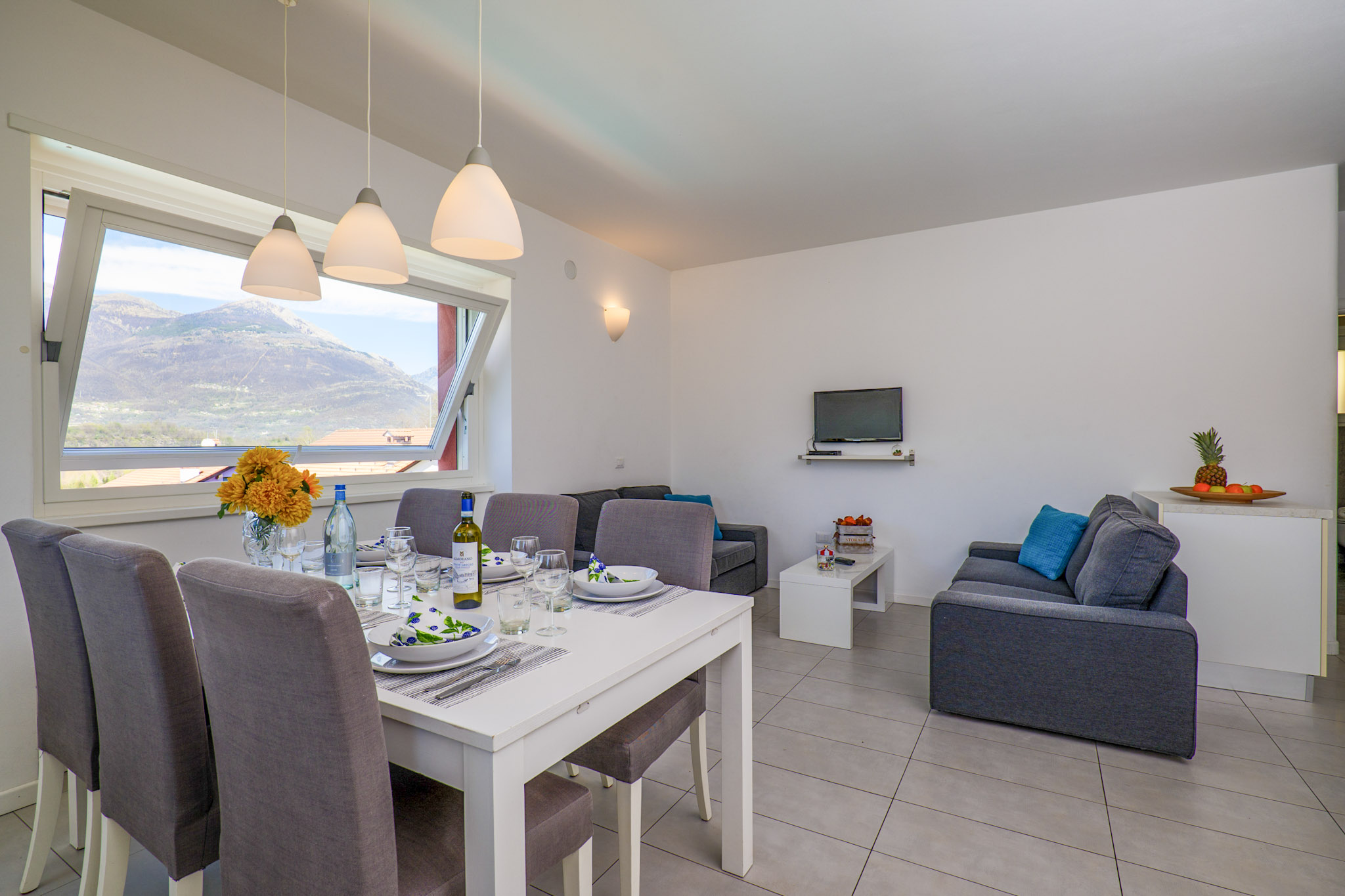 - Wohn-/ Esszimmer mit 2 Sofas, SAT-TV und Ausgang auf die Terrasse