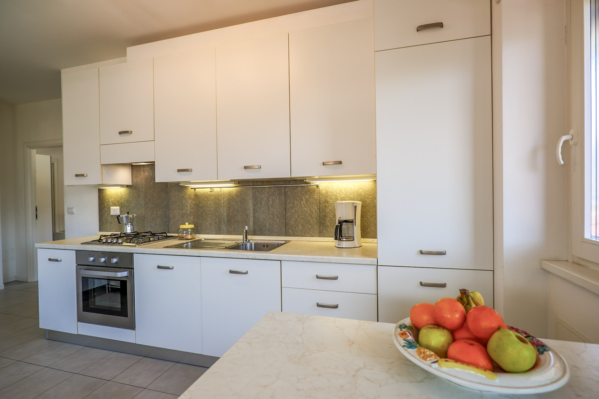 - Küchenzeile mit 4-Platten-Kochfeld, Backofen und Geschirrspülmaschine