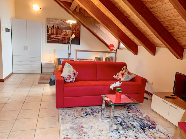 - Wohn-/Schlafraum mit Doppelbett (einzelne Matratzen: 0,80 m x 1,90 m), SAT-TV und Sicht auf den See, die Borromäischen Inseln und die umliegenden Berge