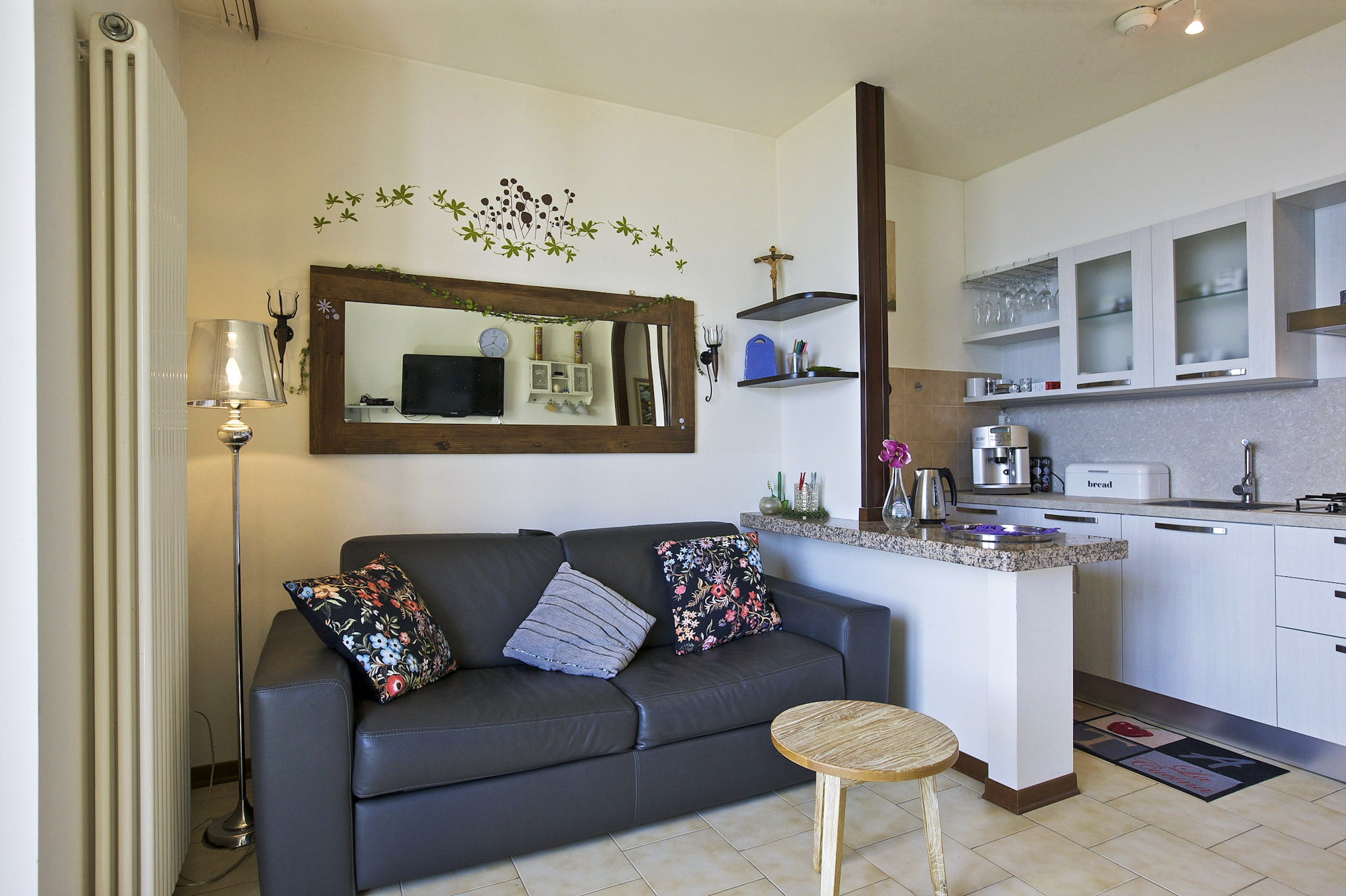 - Gut ausgestattete Küchenzeile mit Geschirrspülmaschine, Backofen, 4-Flammen-Gasherd und Esstheke
