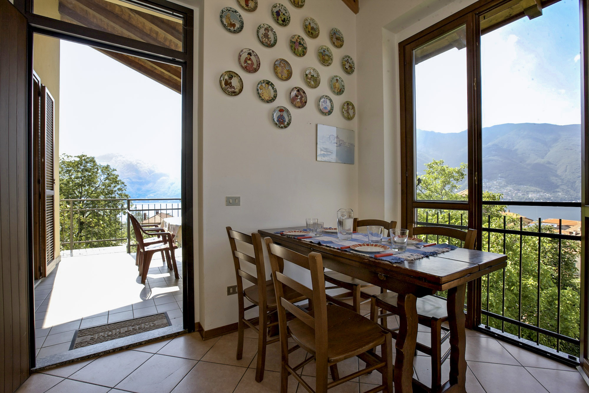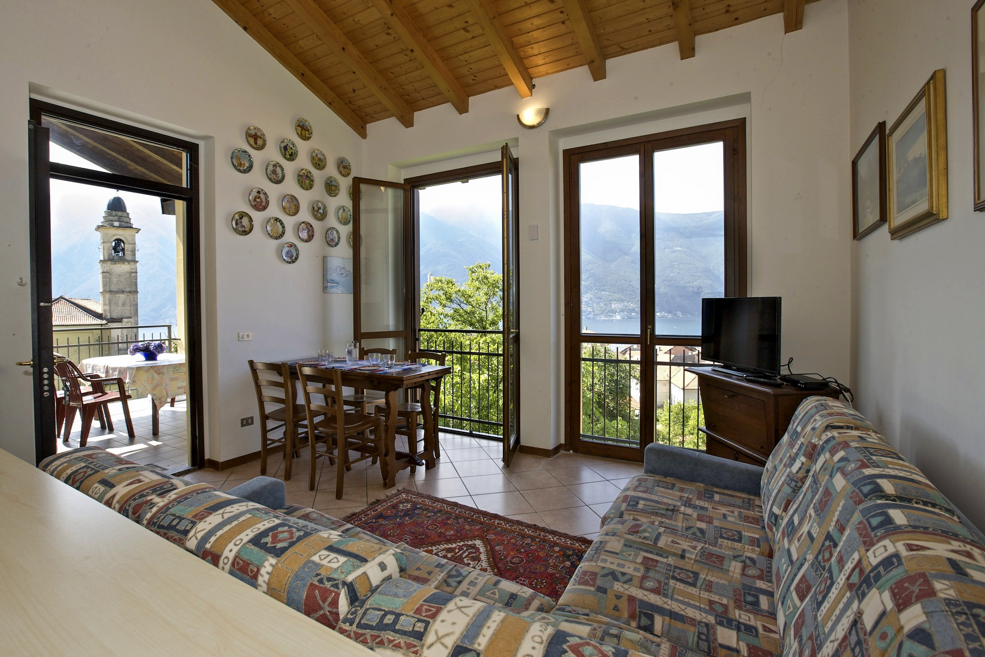 - Wohn-/ Esszimmer mit SAT-TV, herrlicher See- und Bergsicht und Ausgang auf den Balkon