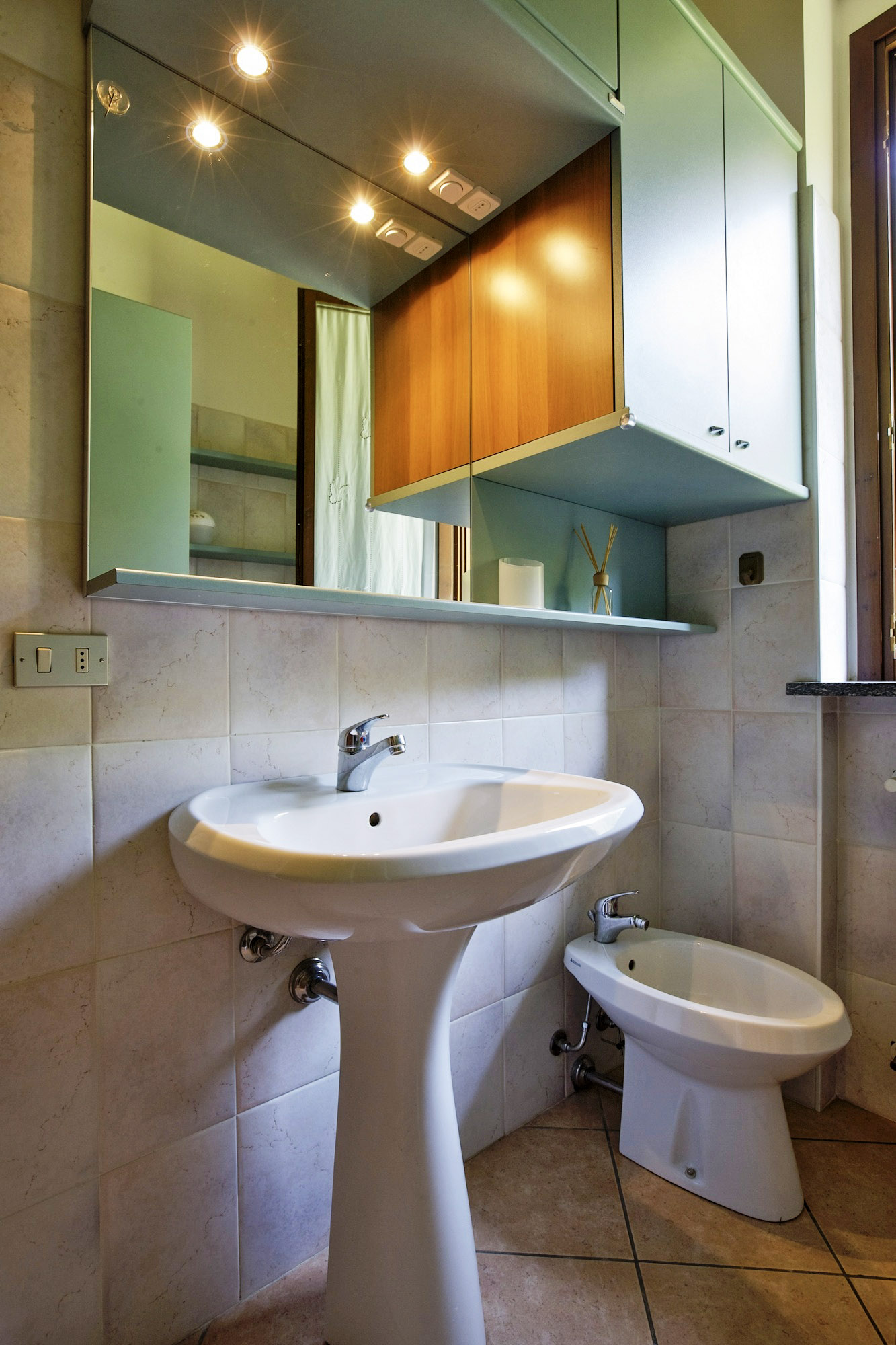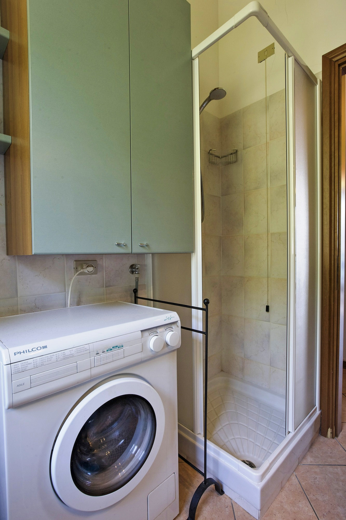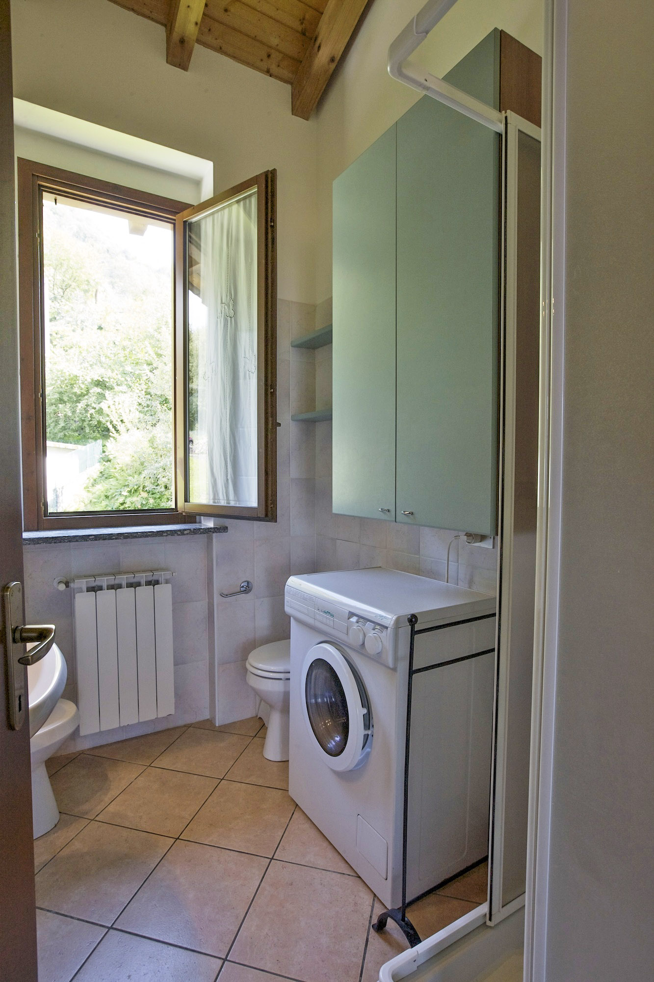 - Freundliches Bad mit Dusche, Bidet, Waschmaschine und Fenster