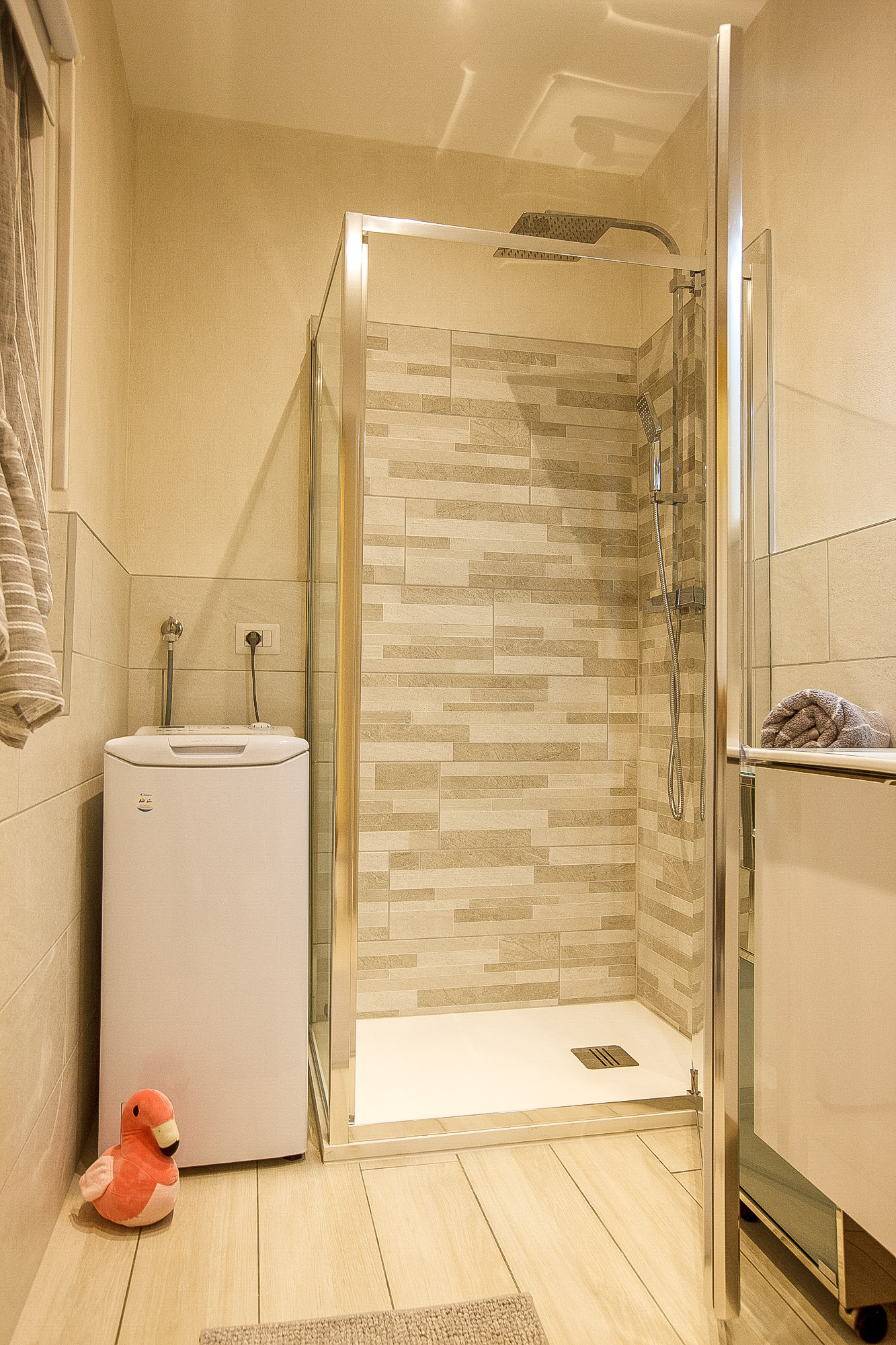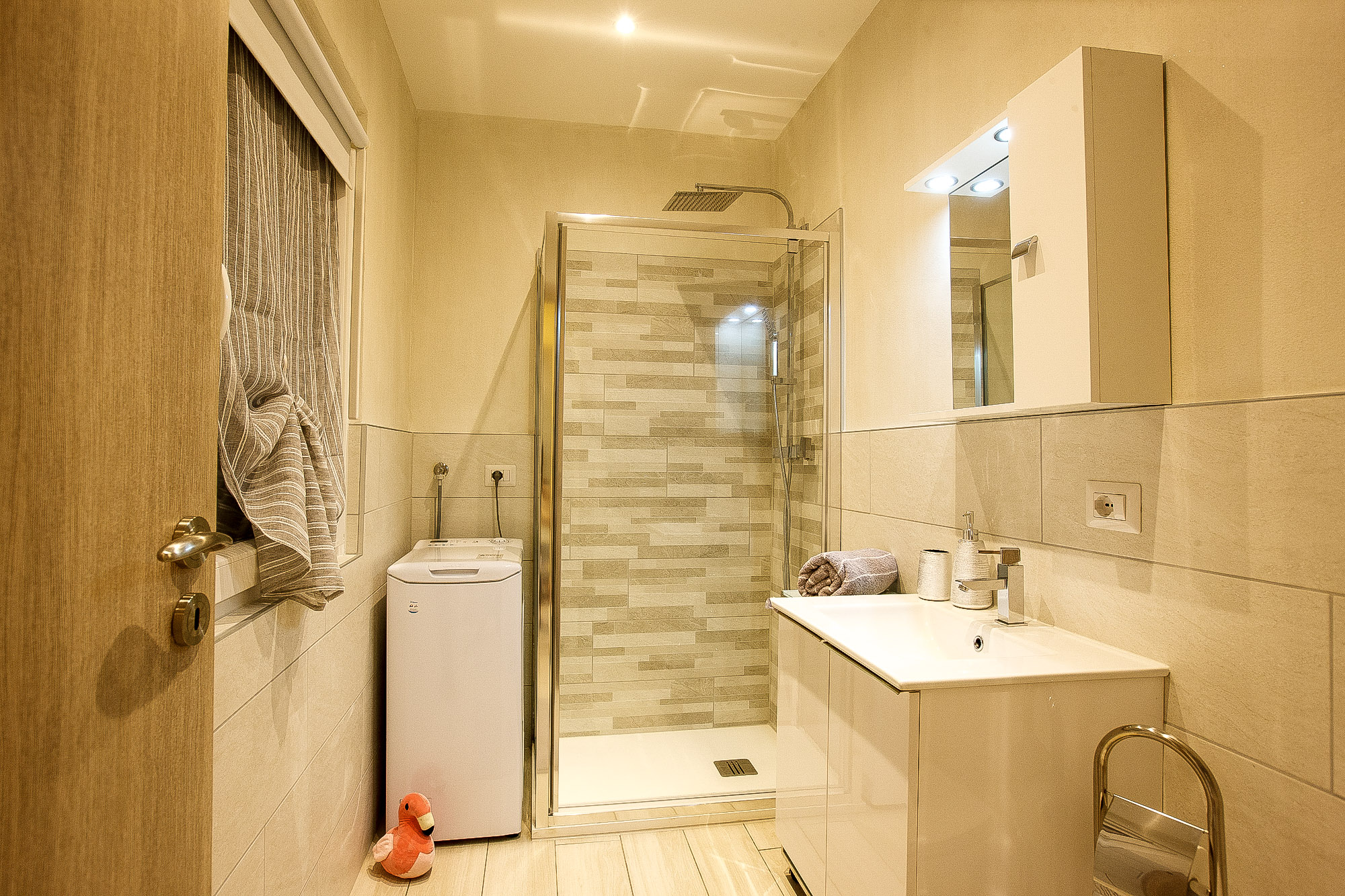 - Modernes Bad mit Dusche, Waschmaschine und Fenster