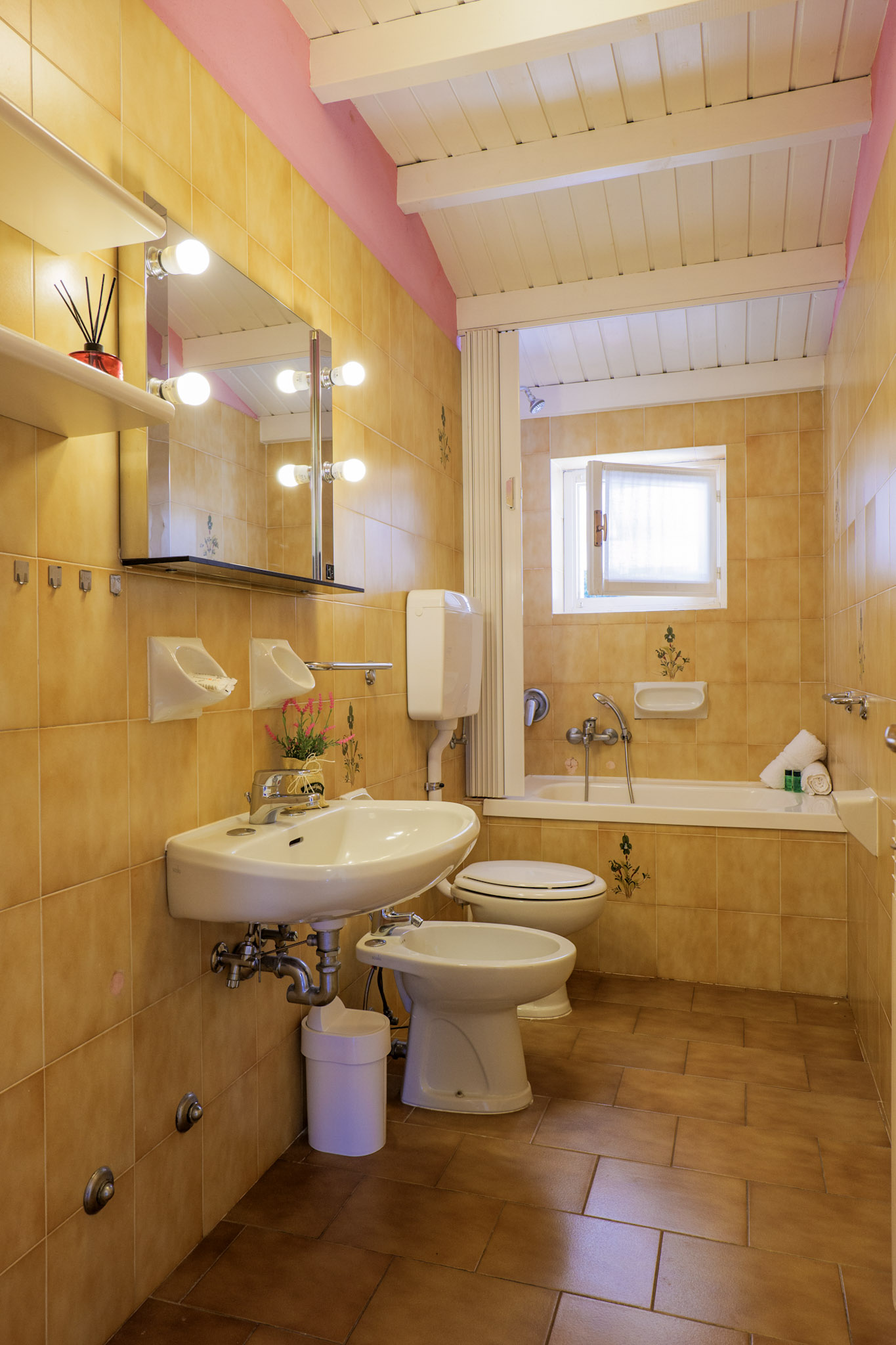 - Badezimmer mit Badewanne mit Duschmöglichkeit, Bidet und Fenster