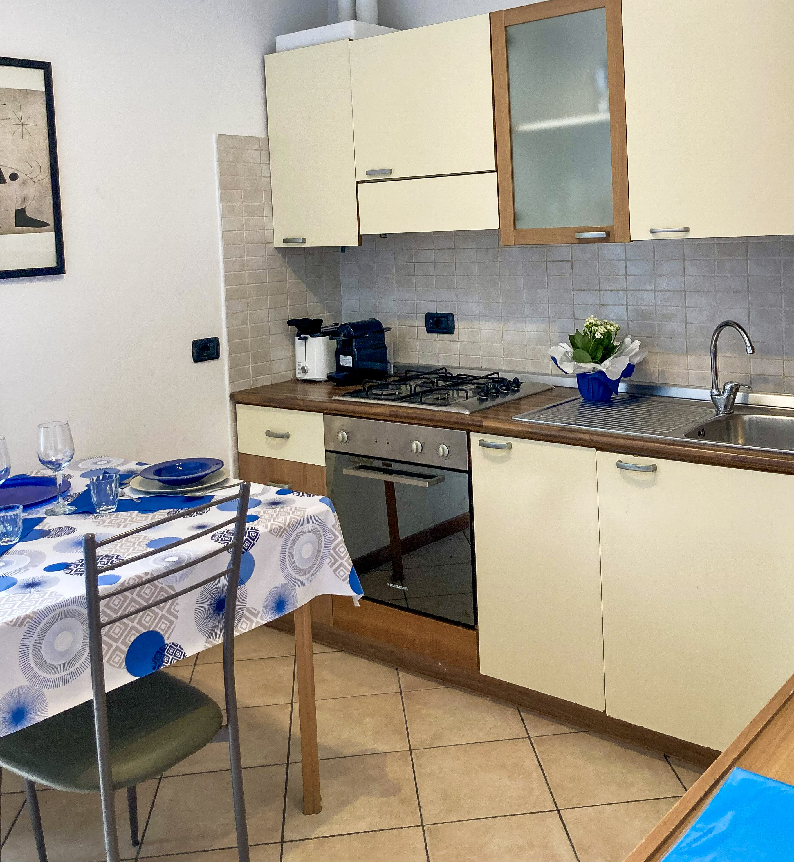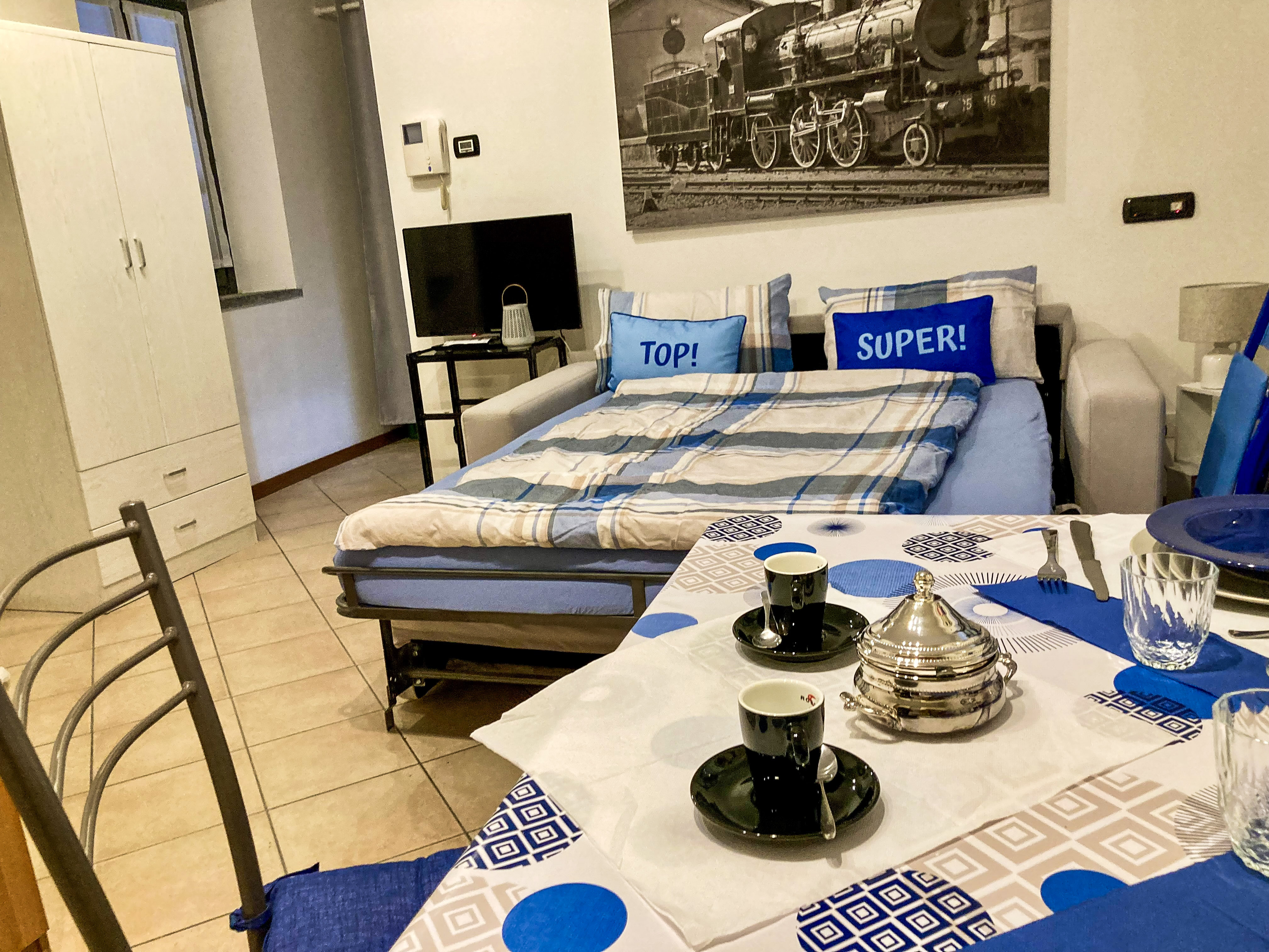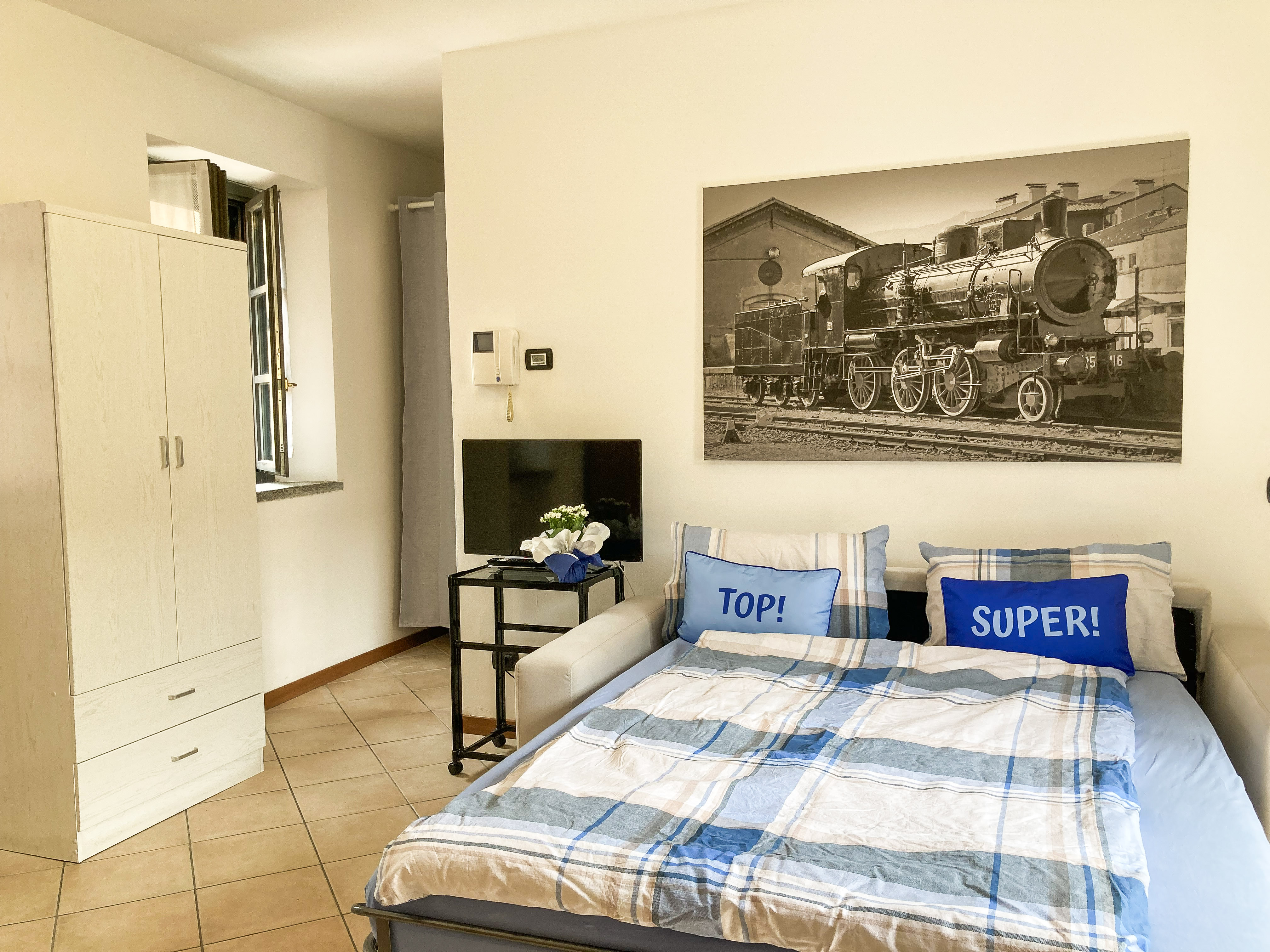 Klein, aber fein! Die ca. 35 m² große Studiowohnung befindet sich in einer malerischen Gasse in der Altstadt von Luino, direkt gegenüber dem Haus des bekannten italienischen Schriftstellers Piero Chiara. Die im 1. Obergeschoss eines historischen Palazzo gelegene „Porta 1“ wurde im Jahr 2024 renoviert und geschmackvoll möbliert und ist sowohl über die Treppe als auch bequem mit dem Aufzug plus 7 Stufen zu erreichen. Bedingt durch die Lage und Größe ist die Wohnung somit der perfekte Ausgangspunkt für einen Urlaub zu zweit, in dem man so wenig wie möglich das Auto bewegen oder sogar mit der Bahn oder dem Schiff anreisen möchte. Der ca. 3 m² große teilüberdachte Balkon eröffnet einen interessanten Blick auf die Gasse, den See und die berühmte „Bar Clerici“, die häufiger in Romanen erwähnt wird und als Drehort dient, besonders bei Verfilmungen von Romanen von Piero Chiara. Ein kostenloser WLAN-Zugang für die Kommunikation mit dem Rest der Welt ist vorhanden. Auf Grund der strategisch günstigen Lage der Wohnung können Sie direkt in das italienische Leben eintauchen und bequem zu Fuß Geschäfte, Bars und Restaurants sowie den See mit seiner wunderschönen Uferpromenade erreichen. Dort befindet sich auch die Anlegestelle der Personenschifffahrt, die Luino mit den Inseln des Lago Maggiore und den kleinen Orten am See in der Lombardei, im Piemont und in der Schweiz verbindet. In ca. 300 m Entfernung erreichen Sie den Strand „Serenella“, wo es einen Teil mit freiem Zugang gibt und einen anderen Teil mit Kiosk und die Möglichkeit, Liegen und Sonnenschirme anzumieten. Ihren PKW parken Sie auf einem abgeschlossenen, privaten Autoabstellplatz in ca. 100 m Entfernung. Hier können Sie auch Fahrräder sicher unterbringen. Zum Be- und Entladen können Sie bis ans Haus vorfahren. Wohnungsaufteilung: