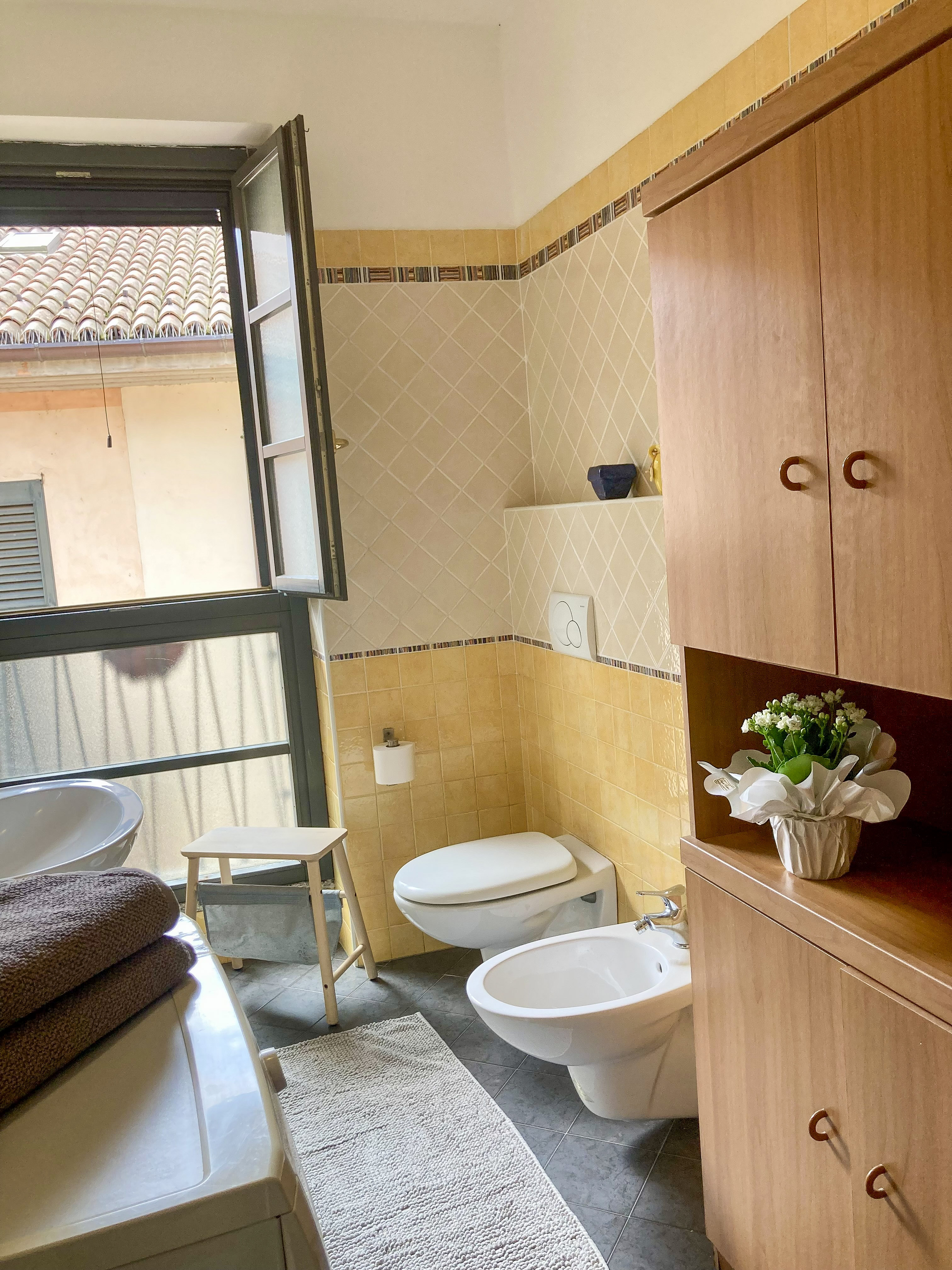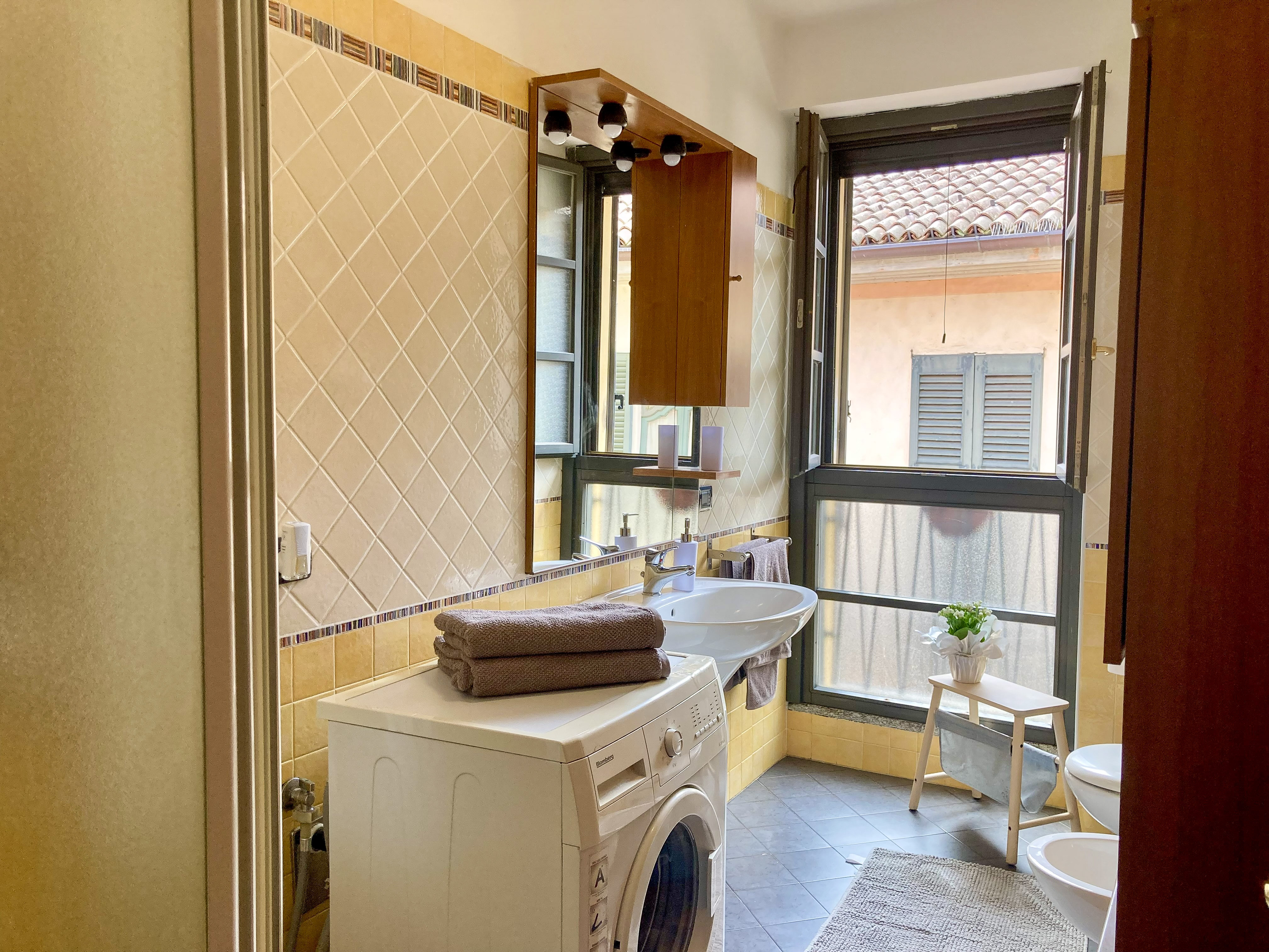 ■ Freundliches modernes Badezimmer mit Dusche, Bidet, Waschmaschine und Fenster
