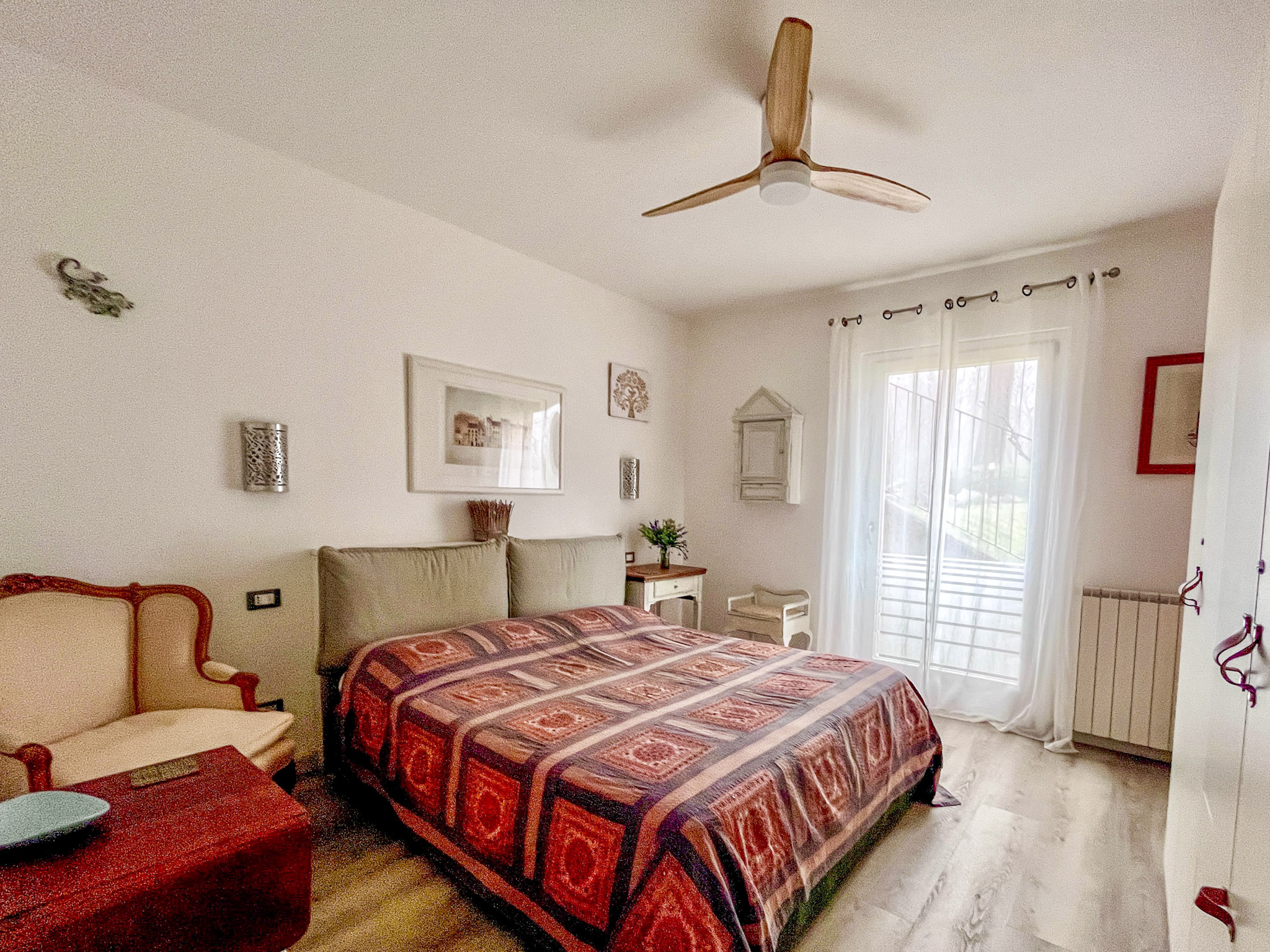 - Das Schlafzimmer verfügt über ein Doppelbett mit einzelnen Matratzen (0,80 m x 1,90 m). Für zusätzlichen Komfort sorgt ein ferngesteuerter Deckenventilator.