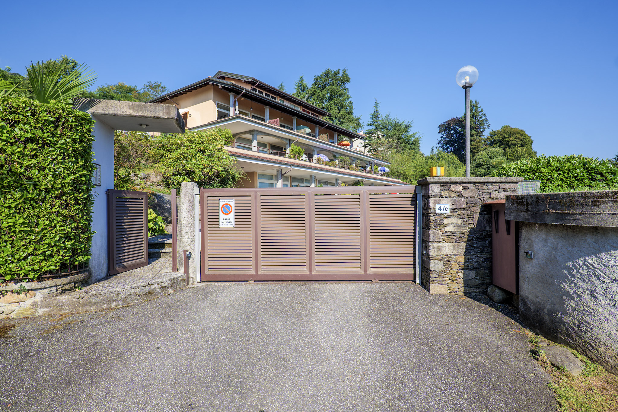 Die idyllisch gelegene Residenz „Vogino“ besteht aus 17 Ferienwohnungen und liegt in ruhiger und sonniger Lage ca. 0,5 km von der herrlichen Seeuferpromenade sowie ca. 1,1 km von der Ortsmitte von Baveno und dem Schiffsanlegeplatz entfernt. Letzterer ist ein guter Ausgangspunkt, um den See zu erkunden. Viele lohnenswerte Ausflugsziele können Sie von hier aus mit dem Zug, dem Auto oder der Personenfähre erreichen. Die ca. 70 m² große geschmackvoll möblierte 4-Zimmer-Maisonette-Wohnung befindet sich in der obersten Etage. Die untere Ebene besteht aus einem Eingangsbereich, einem Wohn-/ Esszimmer, einer Küchenzeile, einem Schlafzimmer und einem Badezimmer mit Dusche. In der oberen Ebene finden Sie einen Flur, zwei Schlafzimmer und ein Badezimmer mit Dusche vor. Ihr privater Außenbereich besteht aus einer Terrasse und einem überdachten Balkon mit Postkartenblick. Sowohl vom Innen- als auch vom Außenbereich aus genießen Sie eine fantastische Panoramasicht auf den See, Baveno, Pallanza sowie die Borromäischen Inseln und die umliegenden Berge. Auch der Poolbereich (Pool ca. 8 m x 4 m, witterungsbedingt geöffnet von ca. Mitte Juni bis ca. Ende August), der im Jahr 2024 renoviert wurde, lockt mit seinem fantastischen Ausblick und lädt zum Verweilen und Entspannen ein. Sollten Sie dennoch Sehnsucht nach dem Rest der Welt verspüren, steht Ihnen in der Wohnung ein kostenloser WLAN-Internetzugang zum Navigieren im Internet zur Verfügung. Zur Residenz gehört außerdem ein separater Waschraum mit Waschmaschine und Wäschetrockner. Zur Wohnung gehören zwei Garagenplätze in der Tiefgarage. Haustiere sind nicht erlaubt. Wohnungsaufteilung: